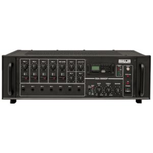 Professional 19rack mounted PA Amplifier/Mixer. 4 Balanced Mic/Line Inputs (Combo jacks) 1 Auxiliary (stereo summing) Input. Bass/Treble & Master controls on front panel. Switchable phantom power for CH 1 mic input. Low cut switch on rear panel. Vox Priority on channel 1 overrides all other Input signals when activated LED indicators for power on, signal & clip. Pre out & Amp in (Send/Return) to connect to Equalizers or EFX processors. Auxiliary Line Out to connect to a Booster Amplifier 24V DC operation.