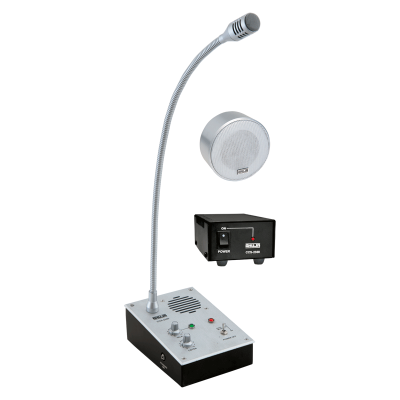 - AHUJA introduces CCS-2300, a two-way counter communication system, exclusively designed for easy and effective conversation across counters with transparent security barriers. It consists of an attendant unit, a customer unit and a power supply unit, which are easy to install and simple to connect through dedicated cables as supplied with the system.