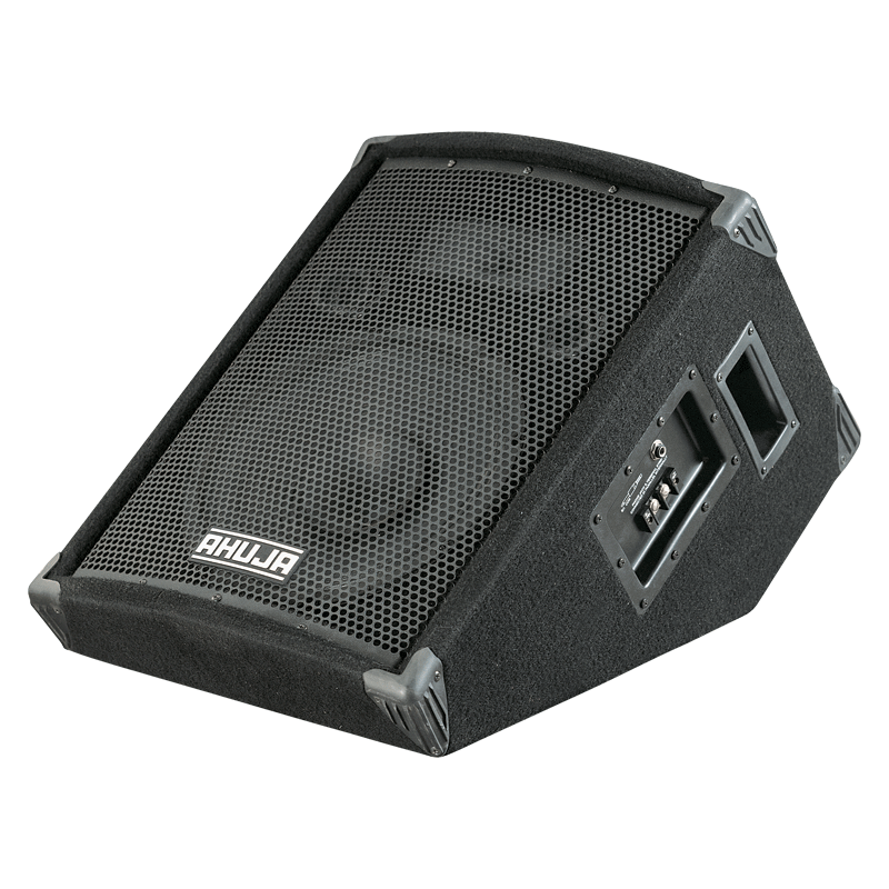 - Compact 2-Way Floor Monitor speaker system comprising of a single 30.48cm (12”) Full Range Dual Cone Speaker and a Piezo Horn Tweeter. An optimally angled enclosure for effective floor monitoring in various indoor & outdoor applications. The system is housed in an acoustically treated Bass Reflex enclosure made of 18mm board and carpet covered.