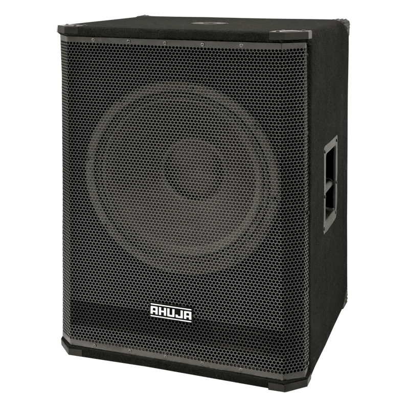 • The SWX-1000 is a high reliability super power SUBWOOFER system with exceptional distortion-free low frequency response. It is fitted with a 457.2mm (18”) LF driver having 127mm (5”) inside/outside voice coil wound on a polyimide fibre glass former. The speaker has an aluminium demodulating ring for better heat dissipation and a specially treated cone for water splash resistance. The cabinet is rugged and specially braced to withstand intense vibrations. Wide port design for increased efficiency. A  stand adapter has been provided at the top of the cabinet for pole mounting a full range speaker system. The cabinet is fitted with heavy duty handles for ease of transportation. The strong metal grille protects the speaker from unavoidable strokes.